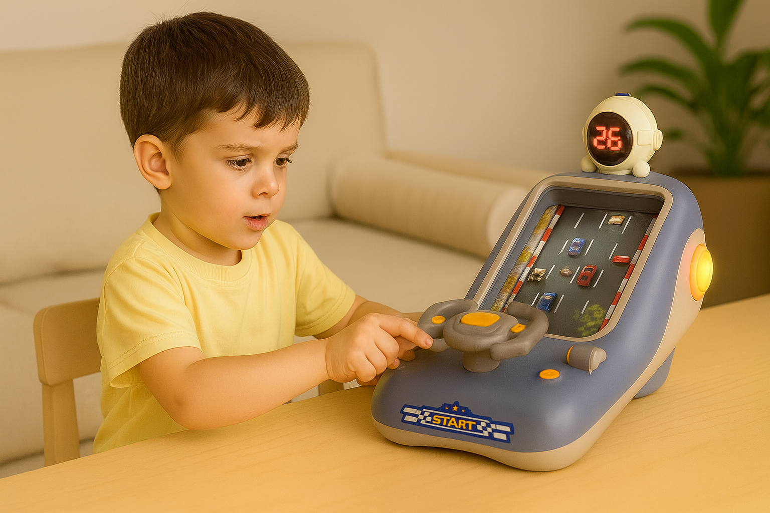 I review toys for a living, and this one stands out. The interactive buttons, steering wheel, and LED display create a real arcade feel — without taking up too much space.
